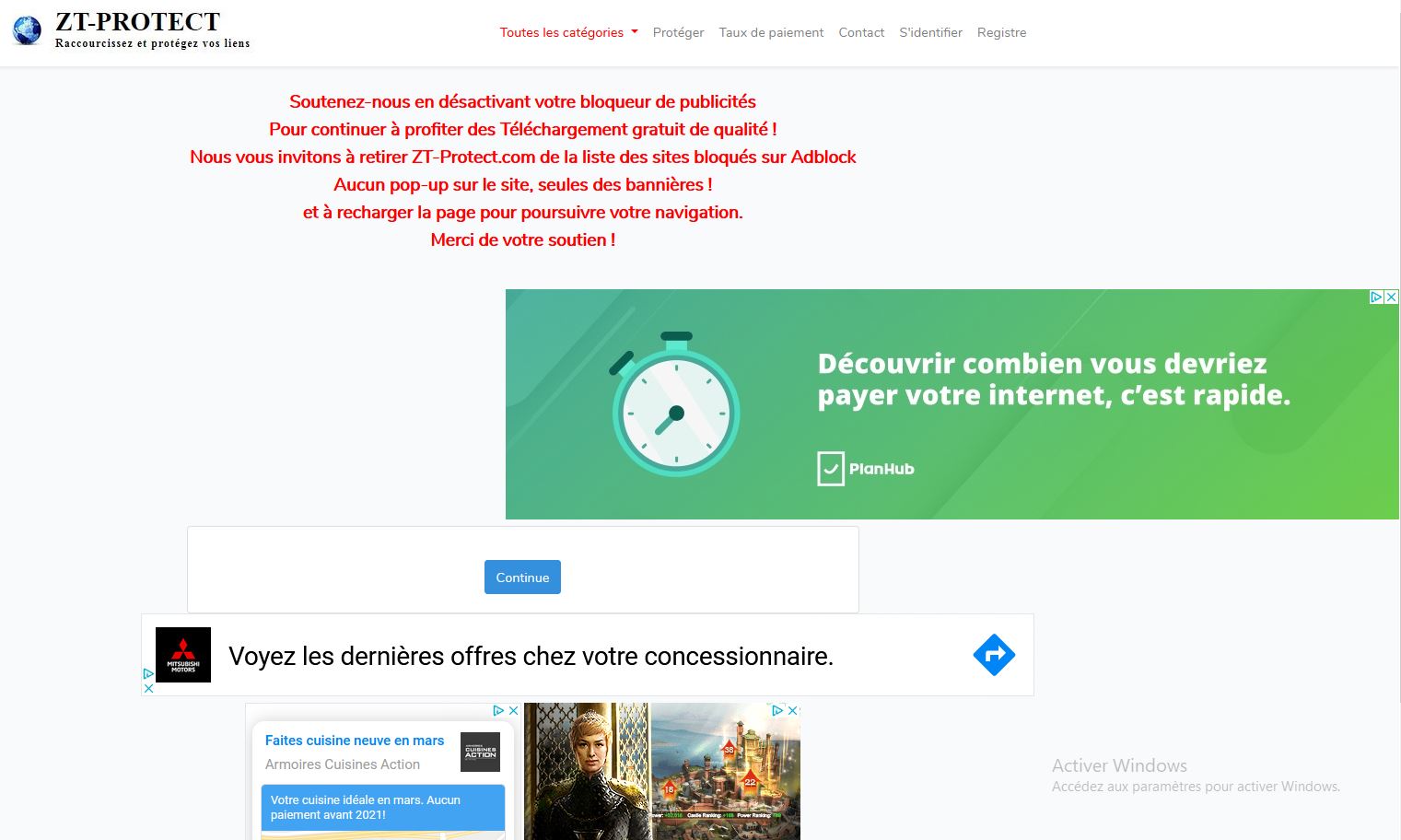 Une fois que vous avez choisi un film, il vous suffit de cliquer sur un des liens exemple : Uptobox, Uploaded, Turbobit, vous êtes redirigé sur ZT-PROTECT et plusieurs pubs apparaitrons.