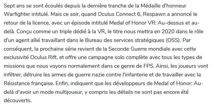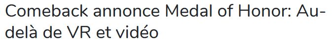 Voici ci-dessus l'article de ZT-PROTECT : Comeback annonce Medal of Honor: Au-delà de VR et vidéo