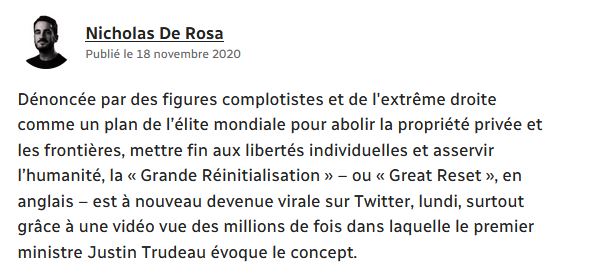 Radio-Canada tente encore une fois de nous faire comprendre par son journaleux des Décrypteurs Nicholas De Rosa que c'est une histoire de complotistes et d'extrême droite, l'argument premier des médias pour clore le débat :