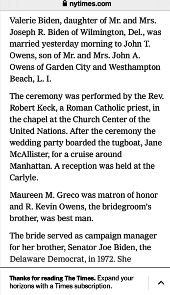 Regardez l'annonce de mariage de Biden dans le New York Times, donc nous savons que le Times le sait.