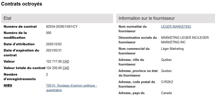 Voici deux dernier contrats ci-haut de Leger reçu directement du gouvernement canadien, le premier ( de l'Agence de la santé publique du Canada) le second du (Ministère des Finances).