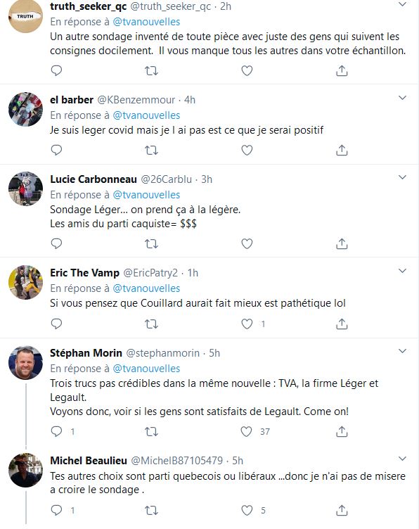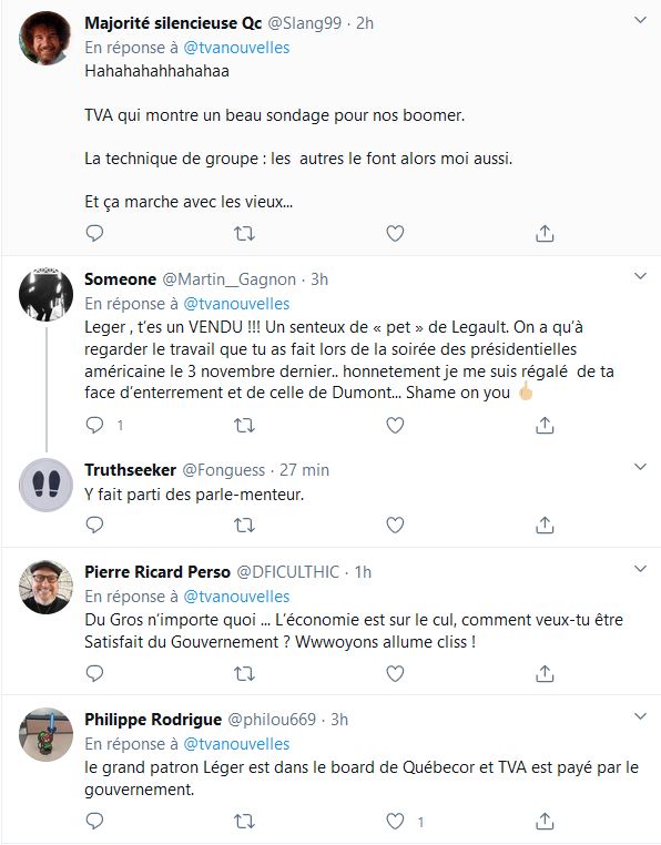 N'oubliez pas que c'est avec vos taxes que François Legault s'est payé un sondage, la firme antidémocratique Leger travaille pour Québec et Canada