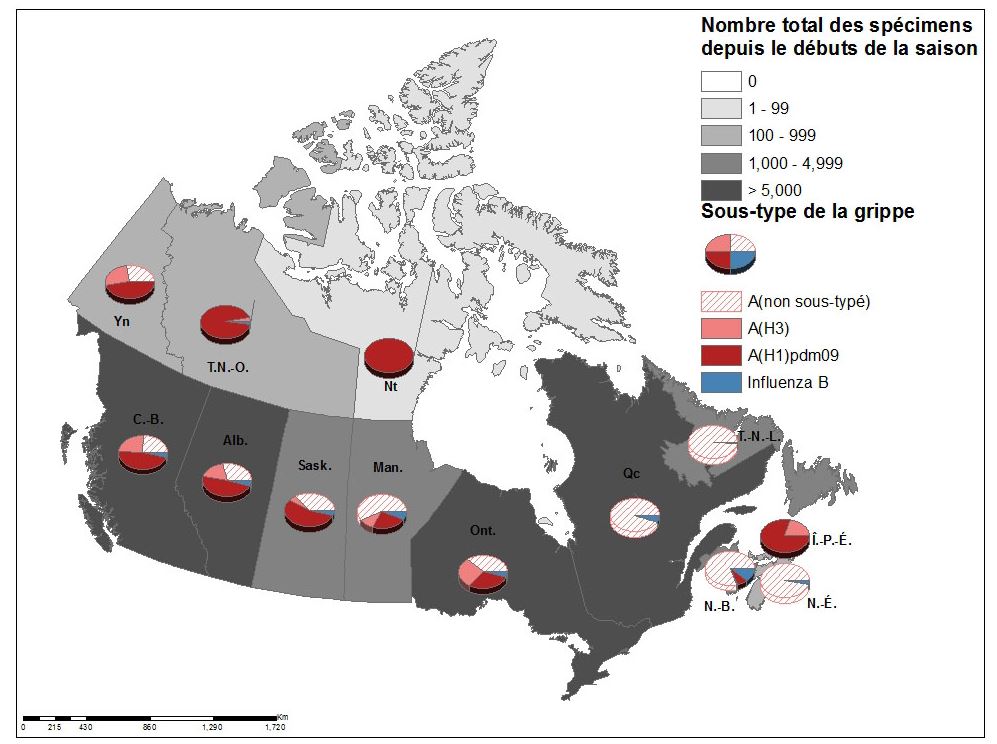 Voici ce que dit Statistique Canada : La grippe A(H1N1) était prédominante au début de la saison (d’octobre 2019 à février 2020). Cette vague a été suivie d’une petite vague de grippe A(H3N2) (de mars à avril 2020). Dans l’ensemble, la grippe A(H1N1) a été la souche prédominante à l’échelle nationale cette saison.