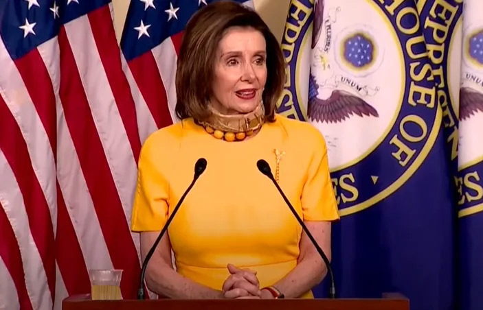Here is a video, I would say extremely disturbing to see Nancy Pelosi in front of the journalists, glass in hand and answer anything to the reporter who asked her a question, live.