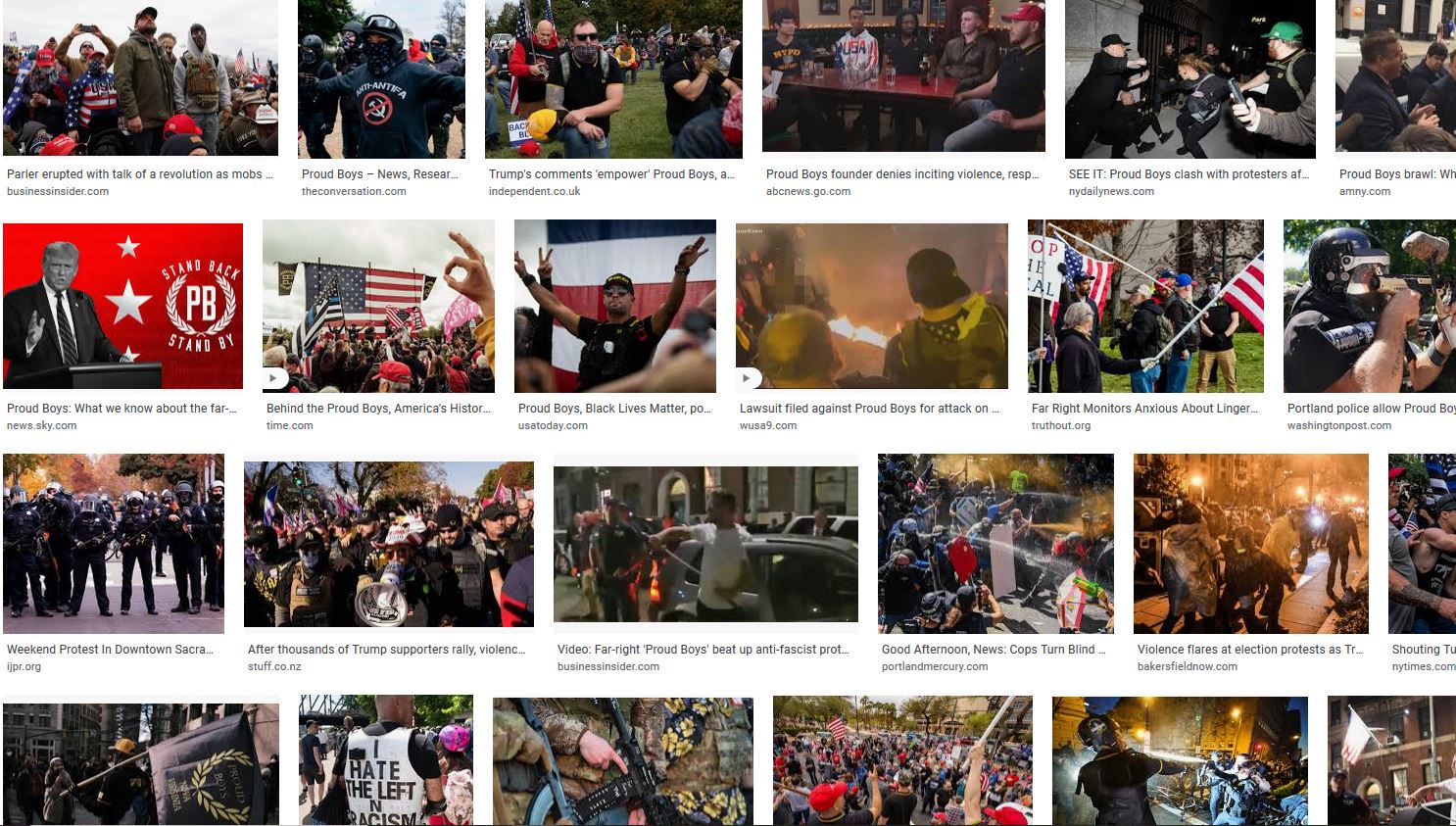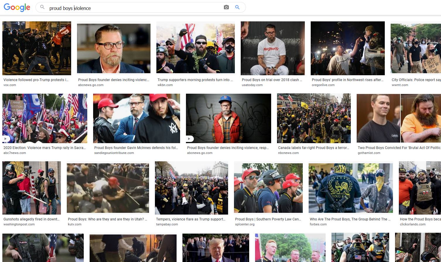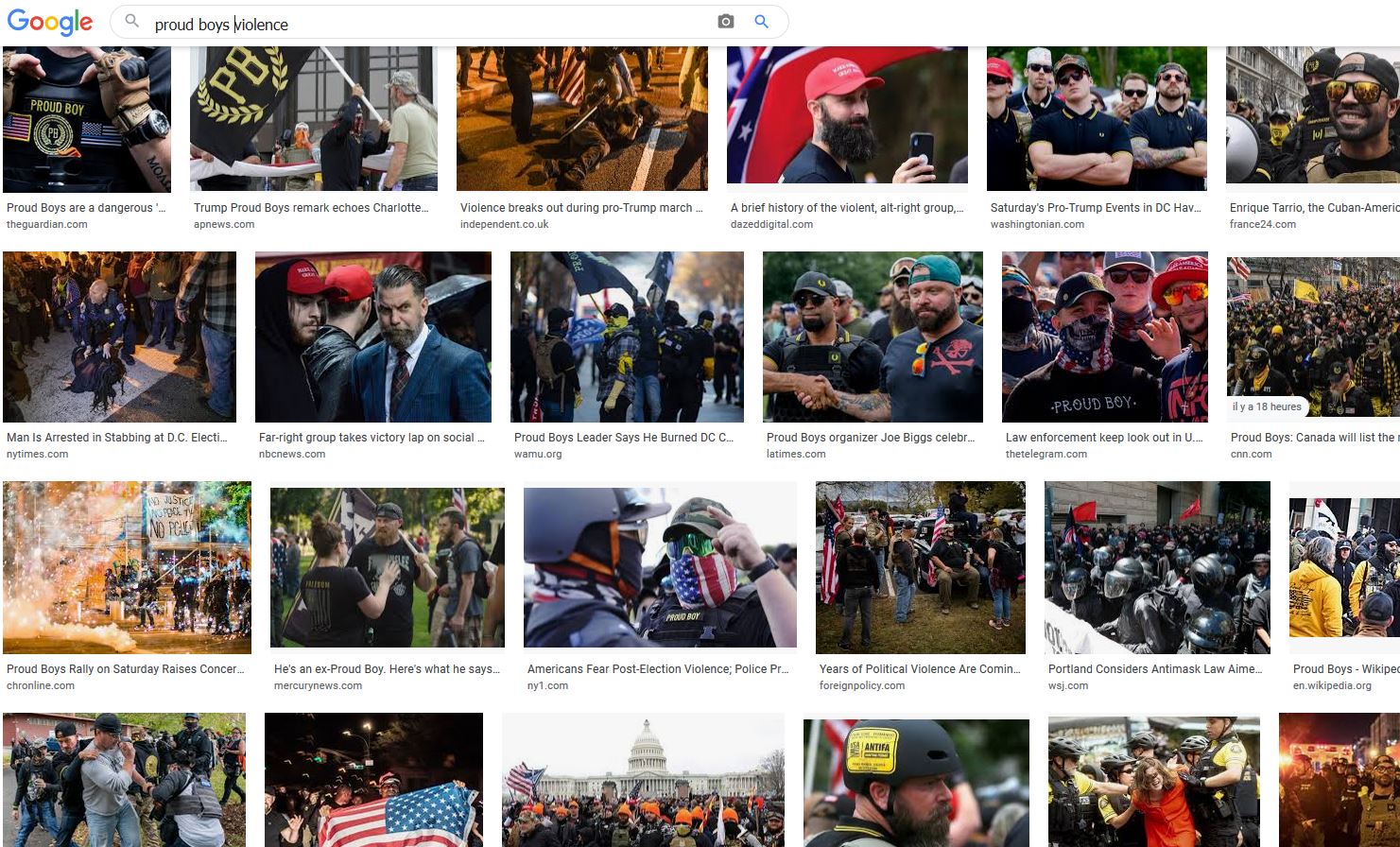 Here is now a search carried out on Google on the Proud Boys and the Antifas, you will notice that the images speak for themselves, we start with the Proud Boys: