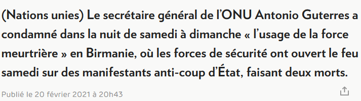 Comme La Presse, qui s'empresse de sortir un article le 20 février sur Guterres, mais le silence total de son discourt le 22 février qui explique que les médias sont de connivence avec les gouvernements pour réprimer nos droits et libertés.