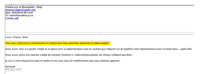 Une semaine avant cette décision, il avait même reçu une version préliminaire du contrat à son adresse courriel officielle de maire.