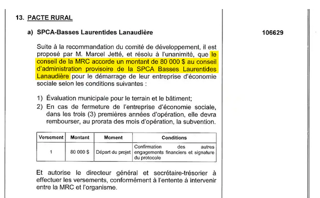 Des versions contradictoires s’opposent, onze ans plus tard, concernant une subvention de 80 000$ accordée à la SPCA LBL par la Municipalité régionale de comté (MRC) de Montcalm.