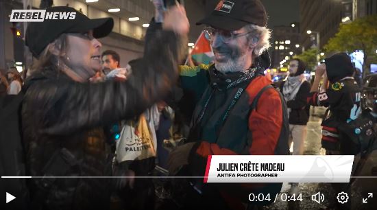 Julien Crête Nadeau, le photographe d’extrême gauche, a agrippé le micro de la Journaliste Alexendra Lavoie et a frappé la caméra de son collègue avec son téléphone durant la ''manifestation'' de Mtl4Palestine, le 7 octobre.