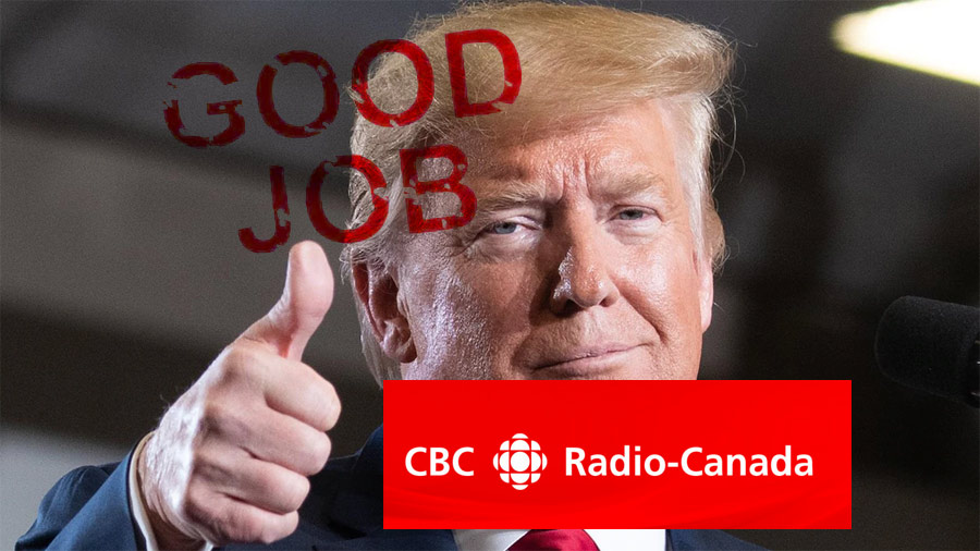 Encore une fois! un travail fantastique de Radio-Canada, quand ce diffuseur à la chance de discrédité Trump, il ne se gêne pas, en fait pour ce diffuseur on pourrait croire qu'une équipe été formé pour dénigrer Donald Trump 24/24.