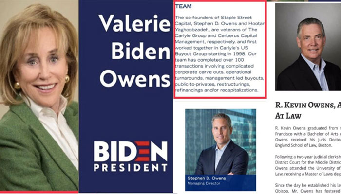 Valerie Biden Owens (la sœur de Joe Biden) est mariée à John Owens. Son frère, R. Kevin Owens, est le fondateur de Staple Street Investors, propriétaire de Dominion Voting. Staple Street Capital est une société de capital-investissement fondée en 2009 et basée à New York. Les cofondateurs sont Stephen D. Owens et Hootan Yaghoobzadeh.
