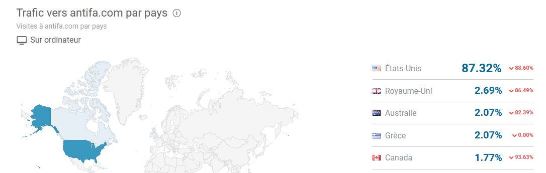 Ce qu'on remarque ci-haut, le site internet à généré énormément de trafic à partir du 8 aout sur le site Joe Biden. Ce qui est intéressant de savoir, l'adresse de l'emplacement des serveurs des antifas se trouve en Georgie , Arizona Virginie, - Atlanta - Namecheap Inc.