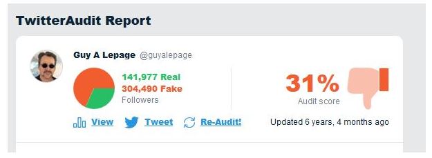 Son compte Twitter qui est boosté aux abonnés fantôme, on comprend que Guy A par exemple, prêt à payer des banques d'abonnées pour faire croire qu'il est très populaire, ça ne le gêne pas , mais un pti 8$ de plus pour ses poches de millionnaire subventionné, pour dénigrer, insulté et diffamer davantage « ça ne devrait pas le faire réagir de la sorte». En fait, il s'en fou, il suit la ligne de ses chums de la télé, radio, média, etc., ce beau monde de gauchistes.