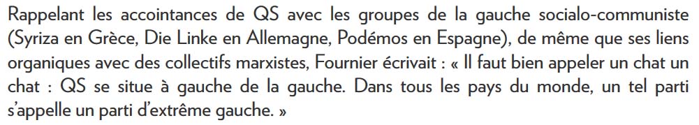 Il vaut la peine de revenir sur le sujet, car QS continue à induire le public en erreur en se présentant simplement comme un parti « progressiste ».