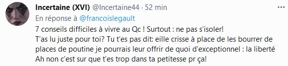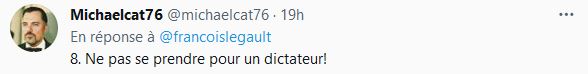 La plupart des commentaires des gens qui le suivent sur son compte Twitter sont négatif, effectivement on sent, que M Legault cherche à faire réagir en nous donnant 7 conseils, on dirait qu'il a clairement le gout de rire des Québécois.