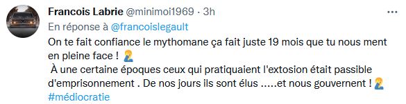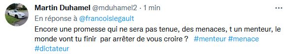 Voilà ce que les gens pensent de lui, après on fera croire que 60%, 70% de la population voteraient pour lui ! mummmm, ça sent les sondages biaisés de Jean-Marc Leger