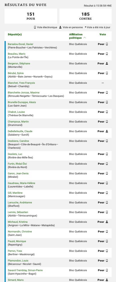 - Le 14 février 2022, Le Bloc à voté pour les mesures de guerres