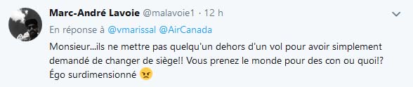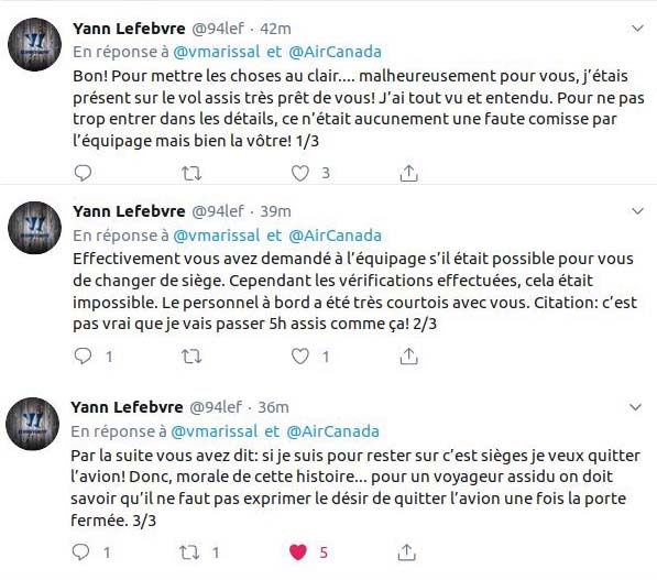 Ce que notre député de Rosemont, ne savait pas, c'est qu'il y avait quelqu'un qui était assis non loin de lui, il a été témoins de la scène, selon cette personne, il voulait changer de place ce qui lui a été refusé par le personnels, il s'est emporté et il aurait exprimer le souhait de quitter l'avion.
