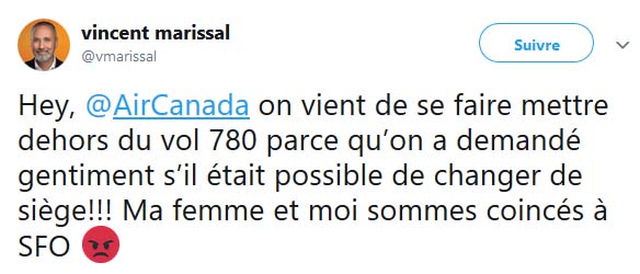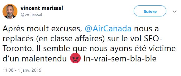 Il semblerait que le 1 er janvier, Marissal et sa femme se soient fait mettre à la porte par les officiers du vol 780 d'Air Canada.