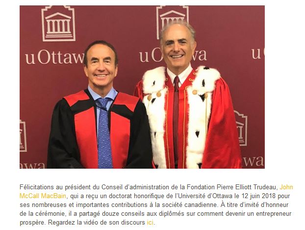 La preuve à l'appui de l'accusation selon laquelle McCall MacBain a effectivement donné un don de 928 000 $ pour influencer / faire pression sur Trudeau en sa qualité officielle de Premier ministre du Canada a été dévoilée pour la première fois dans un article du National Post: montre »Dans cet article, il a été confirmé que« un donateur sur six (à la Fondation de la famille Trudeau) est affilié à des organisations faisant actuellement du lobbying auprès du gouvernement ».