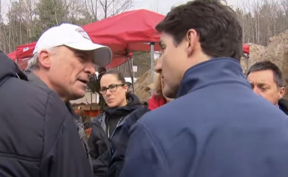 Un bénévole sur une des zones sinistrées du Canada ( Constance Bay Ottawa ) par les inondations des derniers jours n'était pas heureux de voir Trudeau entourer de ses enfants, de ses gardes du corps de la GRC et membres des forces armées.