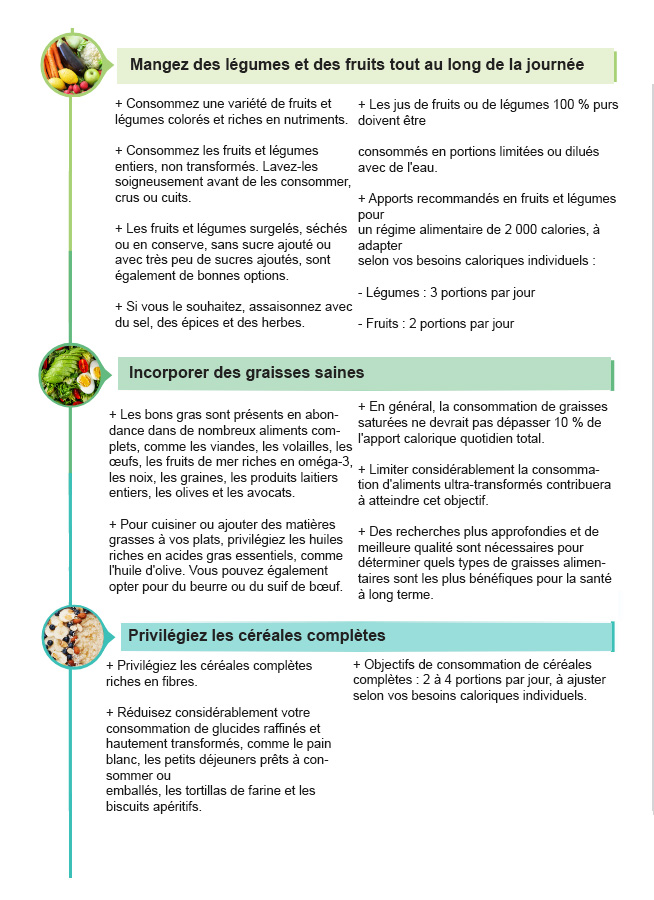 Nutritionniste Mme Stéphanie Côté : L’un des points de rupture majeurs avec les directives précédentes concerne les viandes rouges. Après des années de recommandations pour limiter la consommation de ces aliments, les Américains sont dorénavant encouragés à en manger.