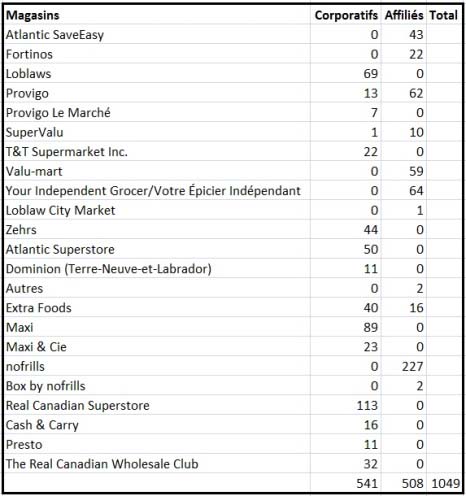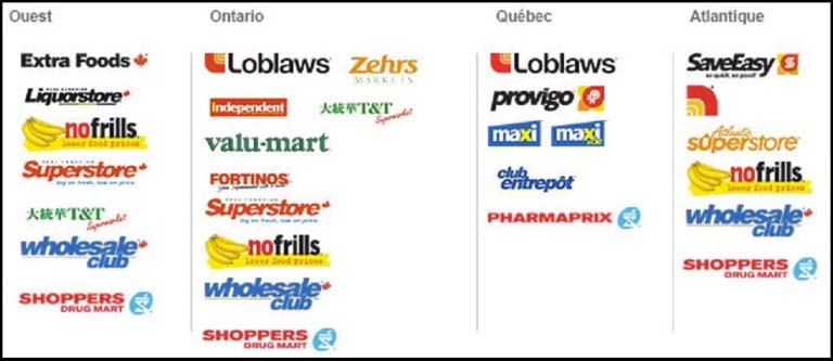 Loblaws possède ou contrôle 1049 points de vente au Canada. Les bannières les plus importantes au Québec sont les Loblaws, Maxi & Cie, Maxi, Provigo, Club entrepôt, Intermarché et Axep.