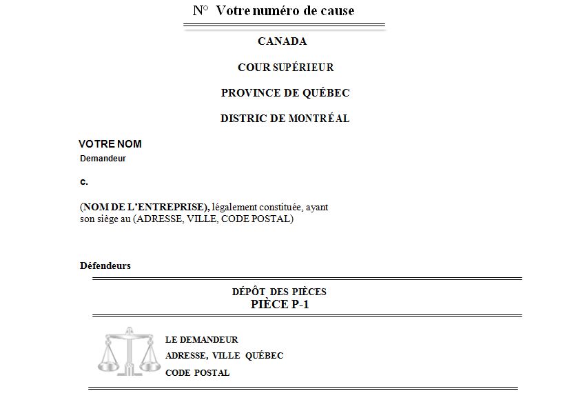 Lorsque vous écrivez une requête dans le but évidemment de poursuivre, vous devez inclure un dossier contenant les preuves qui sont pertinentes pour votre cause.