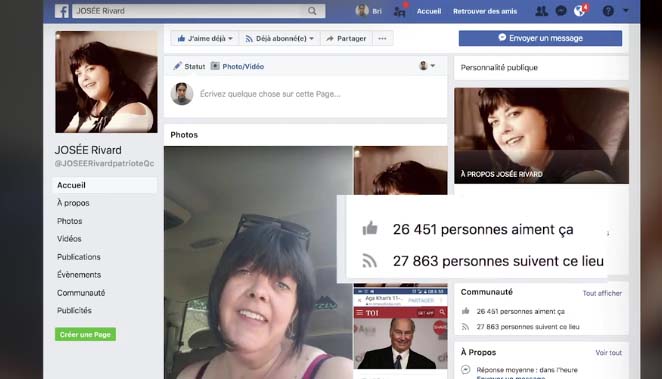 Voici de la désinformation du Journal de Montréal, dans l'enquête on reproche à Josée Rivard des propos haineux envers les musulmans, etc. Tout dernièrement, celle-ci a changé de cap, tous les gens qui utilisent les réseaux sociaux sont au courant de la nouvelle et qu'en fin de compte elle aime bien les musulmans, elle a fait la paix avec eux.