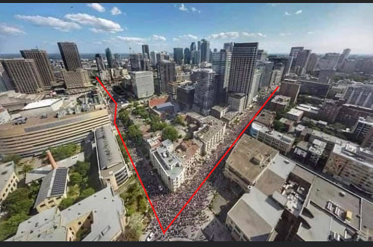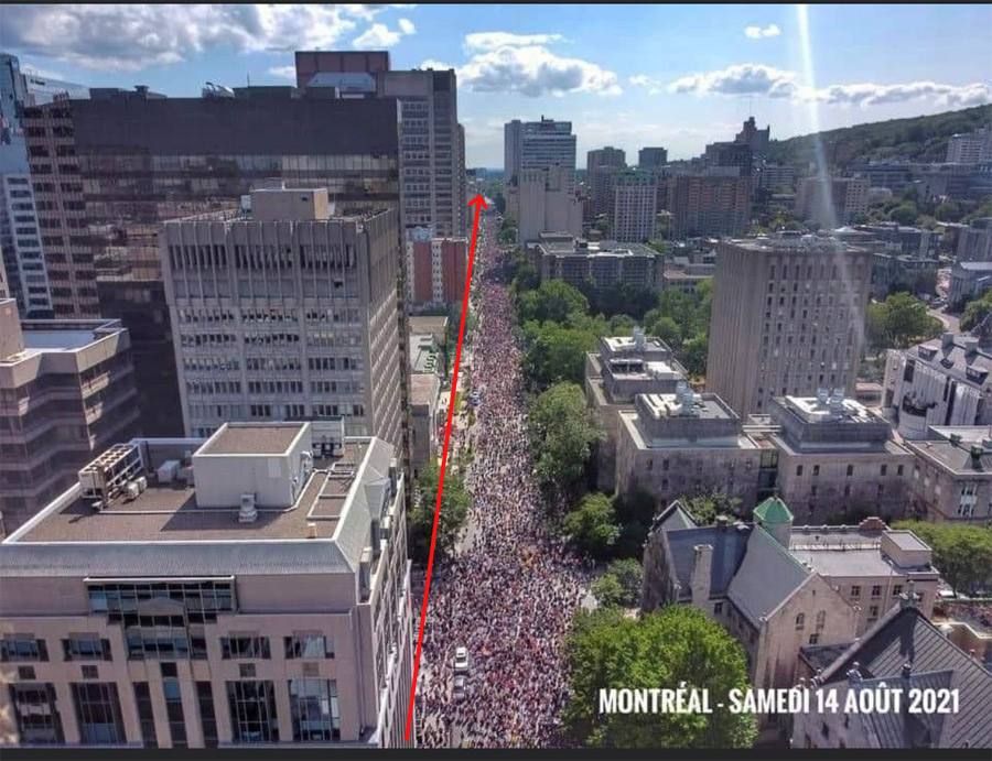 Francis Pilon : «selon nos informations, entre 15 000 et 20 000 manifestants ont pris la rue samedi» selon les informations du SPVM, ça serait de l'ordre de 110 000 et 125 000 personnes qui manifestaient, mais as besoin du SPVM pour rendre crédible les chiffres 110 000 ou 125 000, une photo, explique bien le mensonge de ce journaliste.