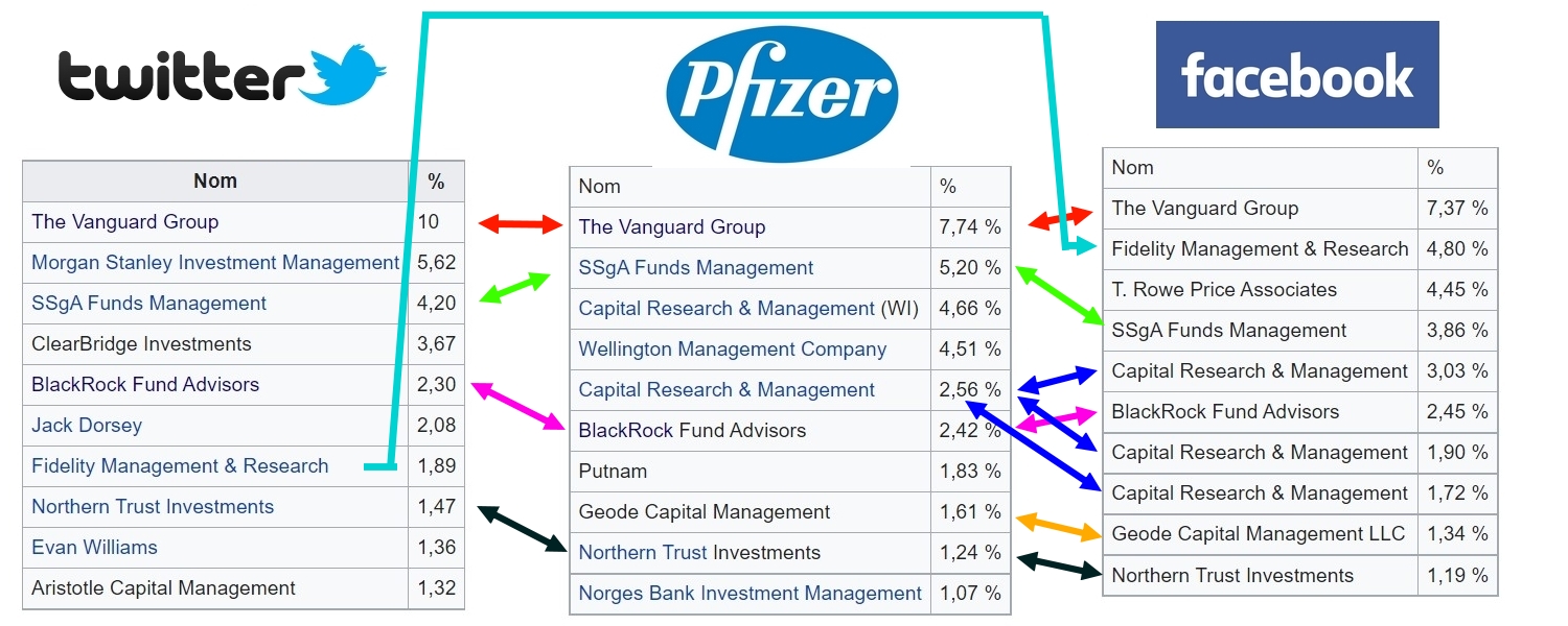 Facebook à signé plus de 100 articles avec La Presse, il faut comprendre derrière qui contrôle qui, si on regarde du côté de Facebook, Twitter et Pfizer l'actionnaire principal est The Vanguard Group, presque que tous les même pour les 3. Maintenant voyons ce que Facebook à financé à La Presse, quel genre d'articles qui intéresse Facebook (parce que pour financé des articles, Facebook doit avoir des intérêts à le faire, sinon, pourquoi ?
