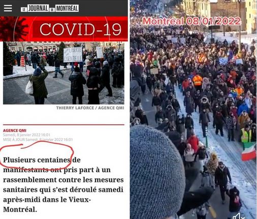 Ce n’est pas compliqué, comme toujours La Presse, TVA Nouvelles et les autres médias du Québec véhiculent de fausses nouvelles, selon ces médias, c'était quelques centaines de personnes qui étaient présentes aujourd'hui à la manifestation anti-vaccin à Montréal.