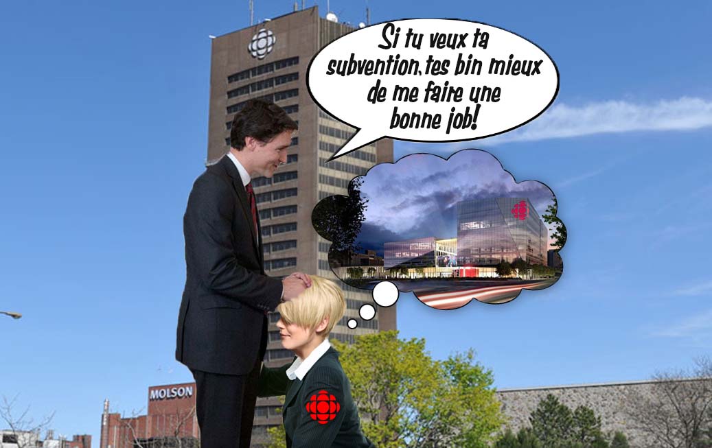 Effet, rien n'est différent aujourd'hui, Radio-Canada continue à faire des pipes à Trudeau, dans un but bien précis, celui de voir la fin de la construction de La Maison mère de Radio-Canada. Qui a payé pour ça, vous croyez ? Voici ce que représente Radio-Canada pour les Québécois. Il doit l’avouer, c'est choquant, mais assez représentatif.