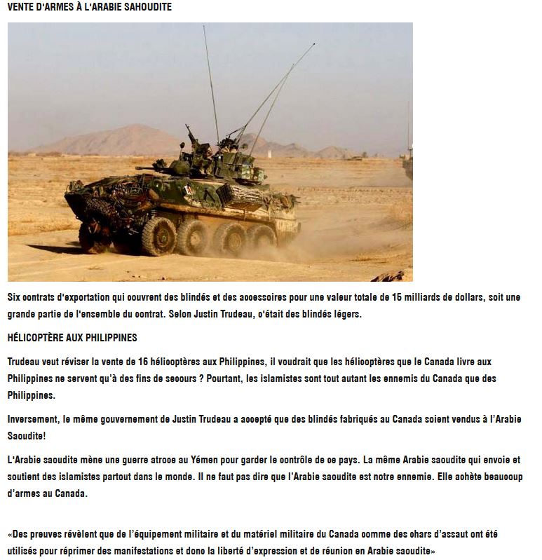 Trudeau vous cache le sang qu'il à sur les mains, car n'oubliez pas que c'est lui qui fournit les armes pour tuer les civils au Yémen. et devenez quoi, il vient d'offrir à Ukraine 100 armes antichars et 2000 missiles.