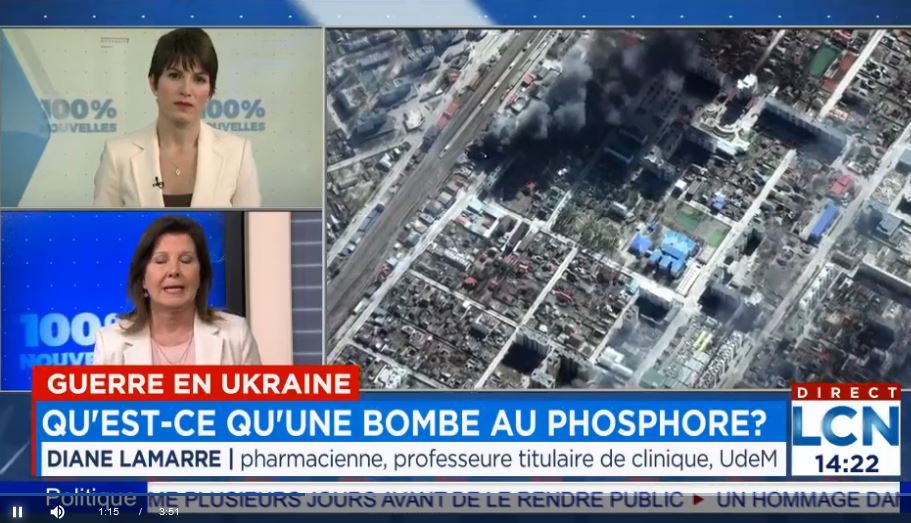 et pour finir des spécialistes bombes au phosphore, mais oui, TVA à toujours des spécialistes, même les dernières nouvelles de la Covid, vaccin etc, commenter par des médecin, infirmiers, pharmacienne, sont maintenant rendu spécialistes de la guerre.