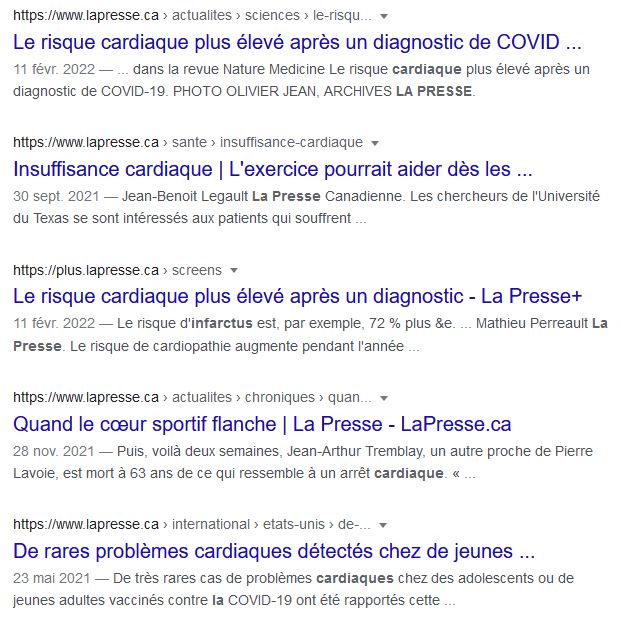 Il va s'en dire qu'il y à aussi des problèmes cardiaque qui sont liés aux vaccin. TVA Nouvelle connait cette information, pour avoir publié depuis des mois quelques articles sur la responsabilité des pharmaceutiques liées à ces effets secondaire. Que ce soit Pfizer, Astra Zeneca, Moderna, tous les vaccins de la grippe Covid ont ces effets secondaires.