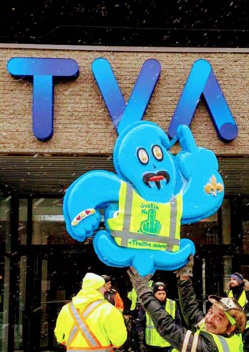 2:33 à 2:47 , Il lance un message aux Québécois, il est tant qu'on sorte dans les rues avec nos gilets jaunes et on va retourner samedi prochain encore devant TVA parce que TVA fait de la propagande.