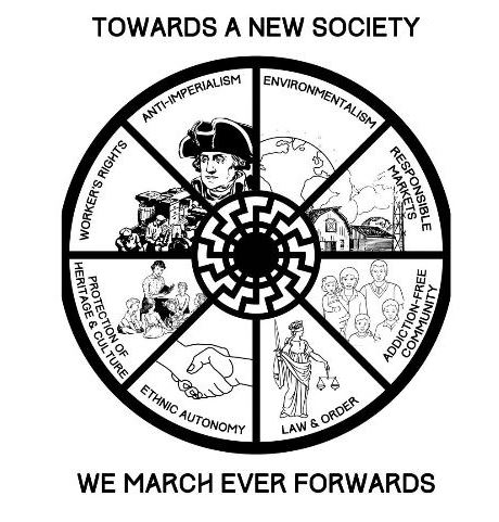 Mais voilà, ces 8 revendications sont présentées sur une roue à 8 branches qui rappelle la roue solaire à 12 branches appelée soleil noir, symbole historiquement païen supposé représenter la course du soleil et des saisons.