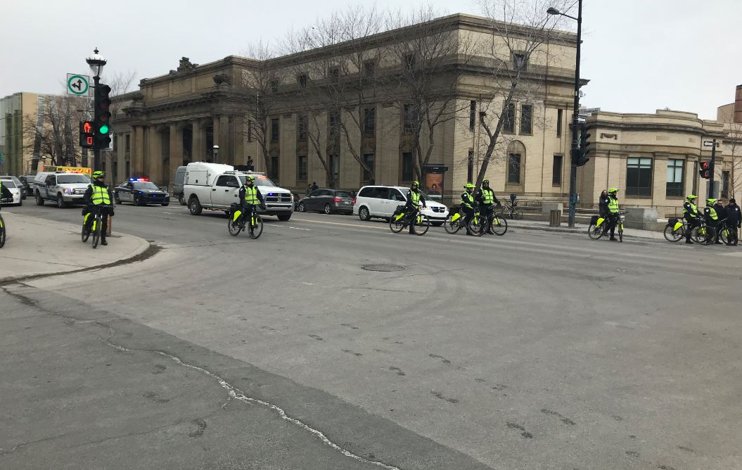 Je me suis stationné au coin de la rue Saint-Urbain et rue Sherbrooke, non loin de ou se tenait la manifestation anti-raciste. À peine quelques centaines de pieds, il y avait des véhicules de polices et une barrière de policiers. J'ai entendu une voix de femme qui hurlait dans un mégaphone des slogans contre les racistes.