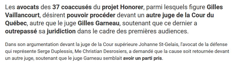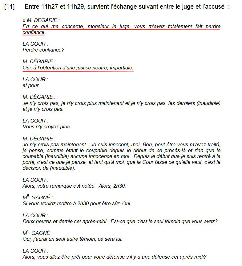 M . Dégarie mentionne ne plus avoir confiance au Juge Garneau, parce qu'il craint qu'il soit partial.