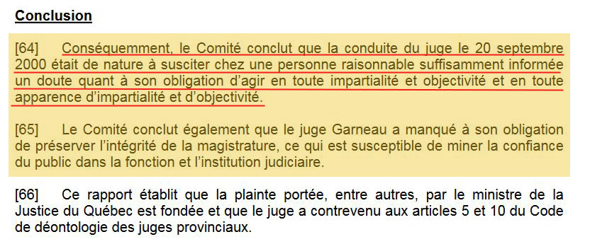 Si le juge Gilles Garneau ne mine pas la confiance de la justice et de l'intérêt public, c'est quoi exactement ?