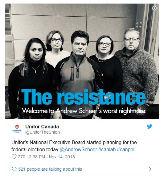 Et le grand syndicat du journalisme a non seulement réclamé l’argent du gouvernement, mais il a également promis sa loyauté à Trudeau. Il y a quelques semaines à peine, ils ont annoncé qu'ils feraient campagne en tant que SuperPAC officiel pro-Trudeau aux prochaines élections. Voici leur tweet, annonçant leur campagne partisane: