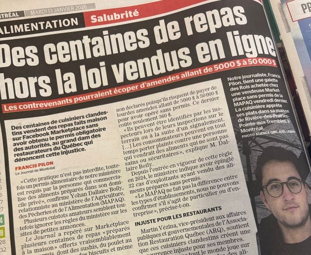 Le journaliste Francis Pilon explique qu'il y a des centaines de repas non déclarées en ligne sur Facebook, Marketplace.