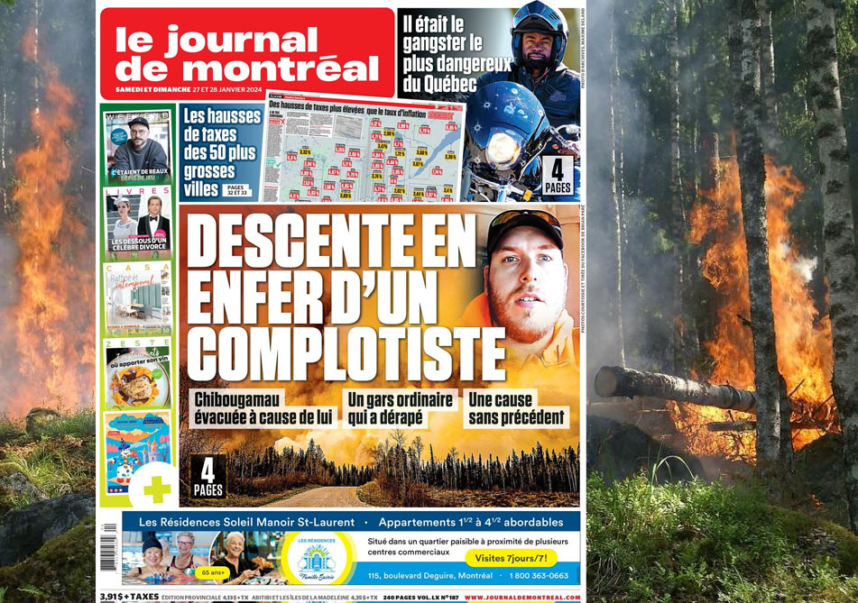 Eh oui qui l'aurait cru, Le Journal de Montréal est sorti sorti en feu, c'est le cas de l'dire, maintenant, c'est à cause des complotistes qu'un complotiste a allumé 14 feux au Québec.