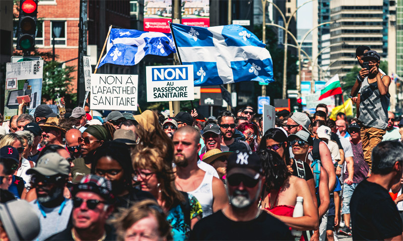 Fake News, Le Journal de Montréal. Hier en après-midi une ’imposante manifestation dans les rues de Montréal contre le passeport vaccinal au Québec.