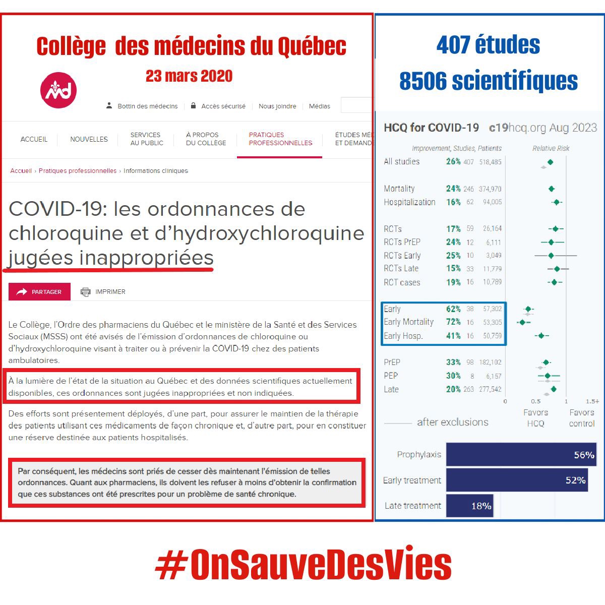 Le communiqué du Collège des médecins du 23 mars 2020, où l’on jugeait «inappropriées» les «ordonnances de chloroquine ou d’hydroxychloroquine [HCQ] visant à traiter ou à prévenir la COVID-19 chez des patients ambulatoires».