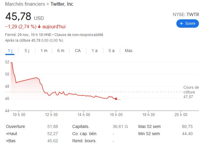 Les médias se ne bousculent pas pour nous dire la vérité que twitter à perdu près 40 000 000 000$ en 2 mois. Début janvier 2021, le dirigeant a pris une décision sans précédent : bannir de Twitter Donald Trump - alors cette décision lui à fait mal.